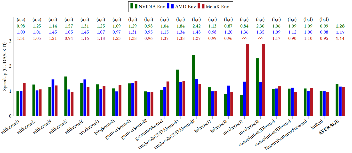 长期以来,国产 AI 芯片面临的最大瓶颈不是硬件,而是 “软件生态跟不上” 。全球 90% 以上的开发者和高性能计算程序都深度绑定在英伟达的 CUDA 平台上。CKTI这项工作使得原本只能在 NVIDIA 芯片上运行的 CUDA 内核能够被自动迁移并以可靠的性能部署到国产芯片上。这大幅降低了应用开发和迁移的成本,算法工程师可以更专注于业务逻辑,而不用担心底层硬件的差异,进而吸引更多开发者加入国产计算生态。