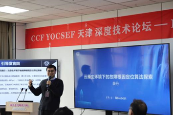 图:裴丹的引导发言,主题为“云原生环境下的故障根因定位算法探索”