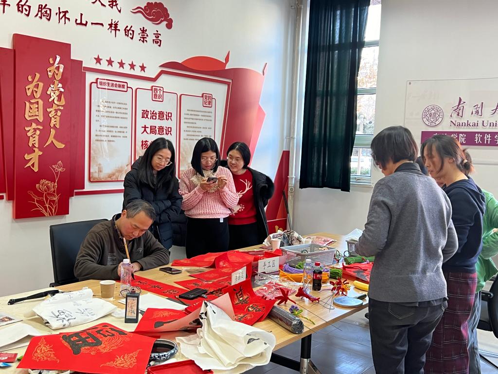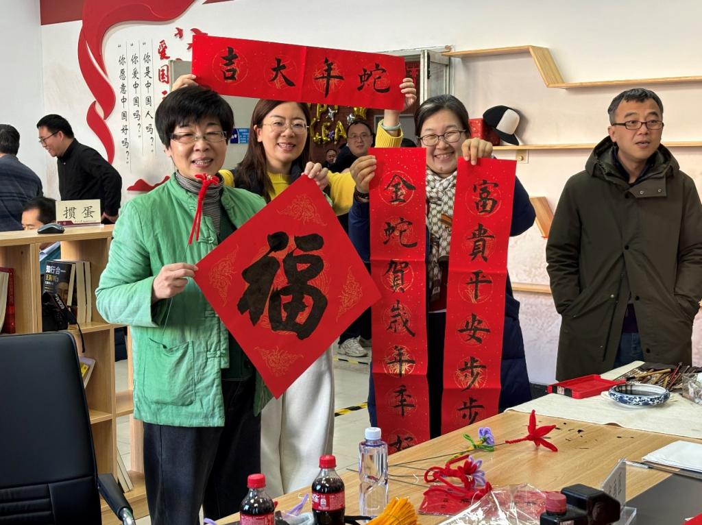 此外,活动还设置了书画展示区和手工体验区,教职工们写福字、题对联,做中国结、扎绒花,充分展示特长爱好,秀出个人风采。