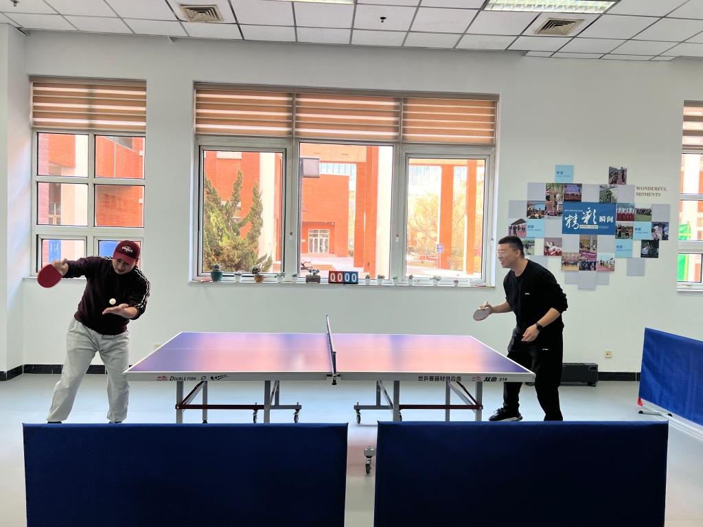 启用仪式过后,精彩纷呈的棋牌类比赛、乒乓球赛和“学习强国”知识竞赛开始了。教职工们一改平日的沉稳,化身为活力四射的运动员,以实力一较高下。在棋牌区,棋手们时而凝眉沉思,时而落子如飞,扑克选手们出牌紧凑有序,搭档之间配合默契,引得旁观者连声叫好。乒乓球赛场上,战况尤为激烈,参赛者挥臂、击球、反手、扣杀,动作一气呵成。 “学习强国”知识竞赛更是脑力的碰撞,老师们凭借日常积累,抢答迅速、应答精准,尽显深厚知识底蕴。