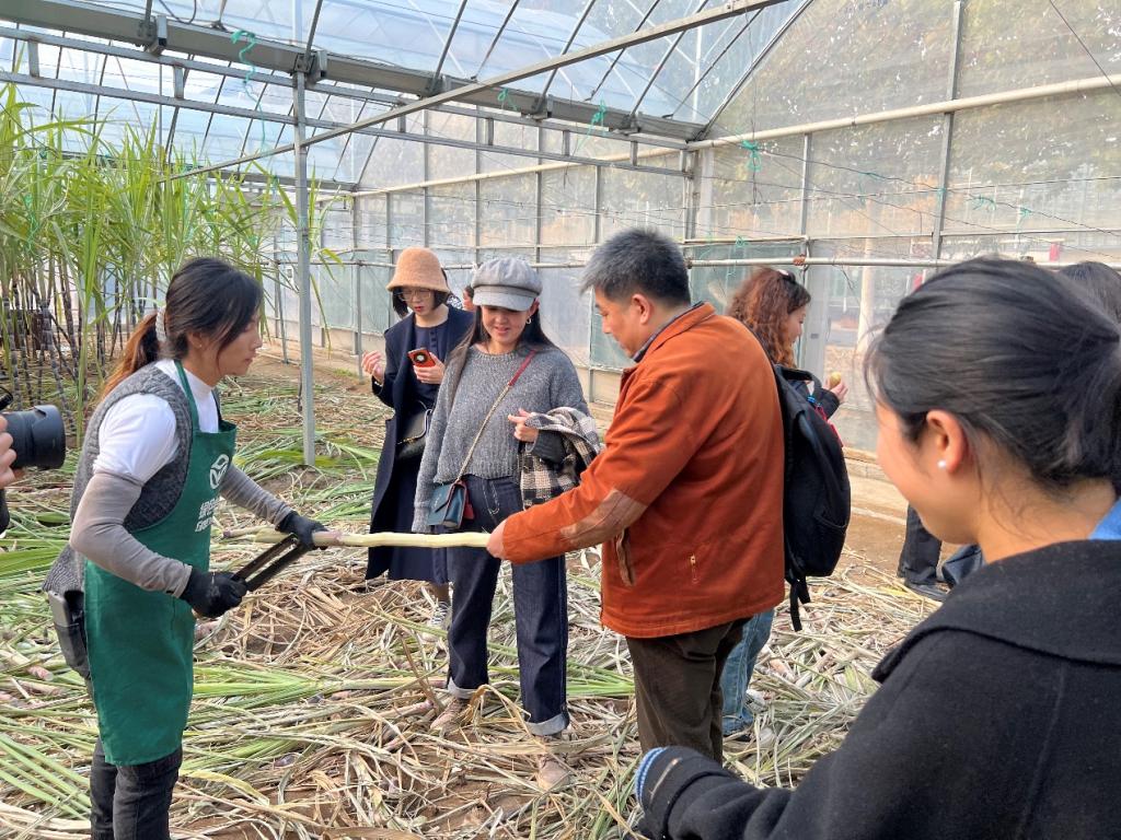 随后,教职工们转至天民田园农业示范园,亲身体验了采摘的乐趣。在甘蔗林中,大家齐心协力砍下一棵棵甘蔗,品尝清甜的汁液;在萝卜地里,大家三五成群,弯腰拔起一个个饱满的萝卜。大家还深入到西红柿大棚和白菜地里,感受亲手采摘和农间劳作的快乐。每个人的脸上都洋溢着丰收的喜悦,手中的采摘成果不仅仅是食物,更是一份难忘的记忆。