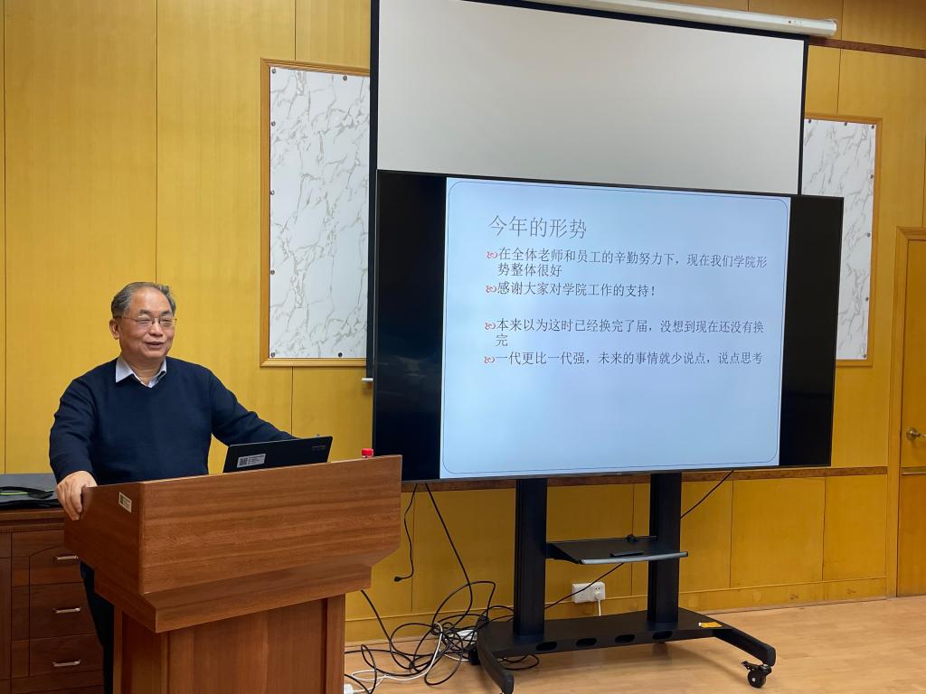 胡军书记在总结发言中表示,完全同意院班子对之前工作的总结和对未来工作的部署,学院在广大教职工的共同努力下,向上向好态势十分明显,但仍需对学院发展所面临的形势、问题和挑战要有全面的认识和把握。我们必须清醒的认识到在团队建设方面,标志性成果仍然不足,在一流课程、优质教材、教师团队建设等方面存在一定的问题,需要采取一系列针对性的措施,不断提升团队建设水平;在教师队伍和人才建设方面,青年教师队伍的培养培训还有不足,队伍结构不甚合理,要着重培养培训青年教师,不断提升青年教师的教学科研水平;在干事创业活力方面,学院干部对标要求仍有不足,未来要深入师生一线,认真听取意见建议,不断加强自身干事创业本领。