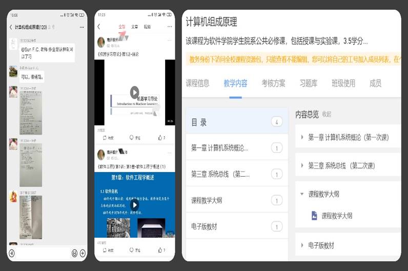 为保障在线教学顺利开展,学院认真动员组织教师在开学前两周积极参加学校教务处组织的“雨课堂”和“智慧树”的在线教学培训。教师们不断尝试各类在线教学平台、社会直播平台、视频编辑软件,在家自建直播环境。学院利用软件专业优势,建立了在线直播、线下录播和线上线下翻转课程体系,保障了在线教学的顺利进行,让每位同学都不掉队。