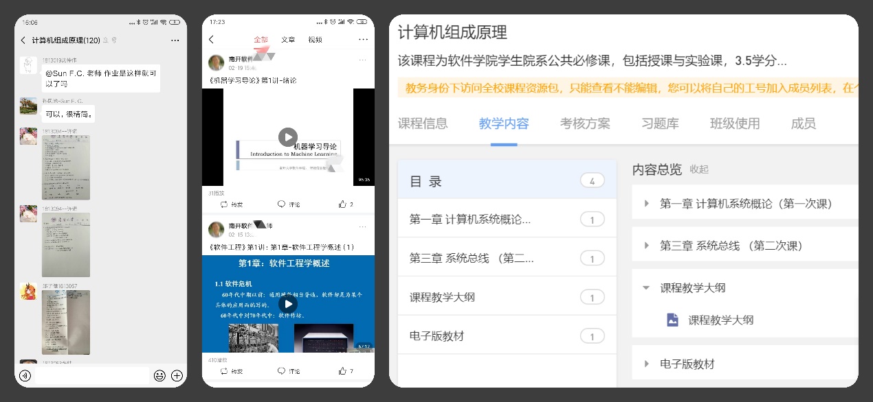 在教学活动组织方面,教学办在开学前一周组织师生为所有课程建立课程群,并选派课代表协助所有选课员工进群。通过主讲教师、助教研究生、课代表和课程群的方式为师生建立有效的沟通渠道,使员工在在线教学平台外沟通顺畅,进而保障教学活动平稳有序。