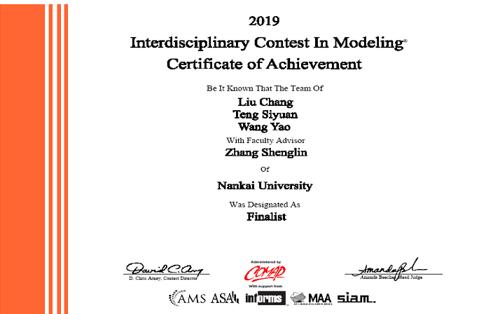 2019年美国老员工数学建模竞赛(MCM)与交叉学科数学建模竞赛(ICM)成绩于日前揭晓。由bw西汉姆联张圣林老师指导的参赛团队在ICM中荣获国际特等奖提名奖(Finalist)。