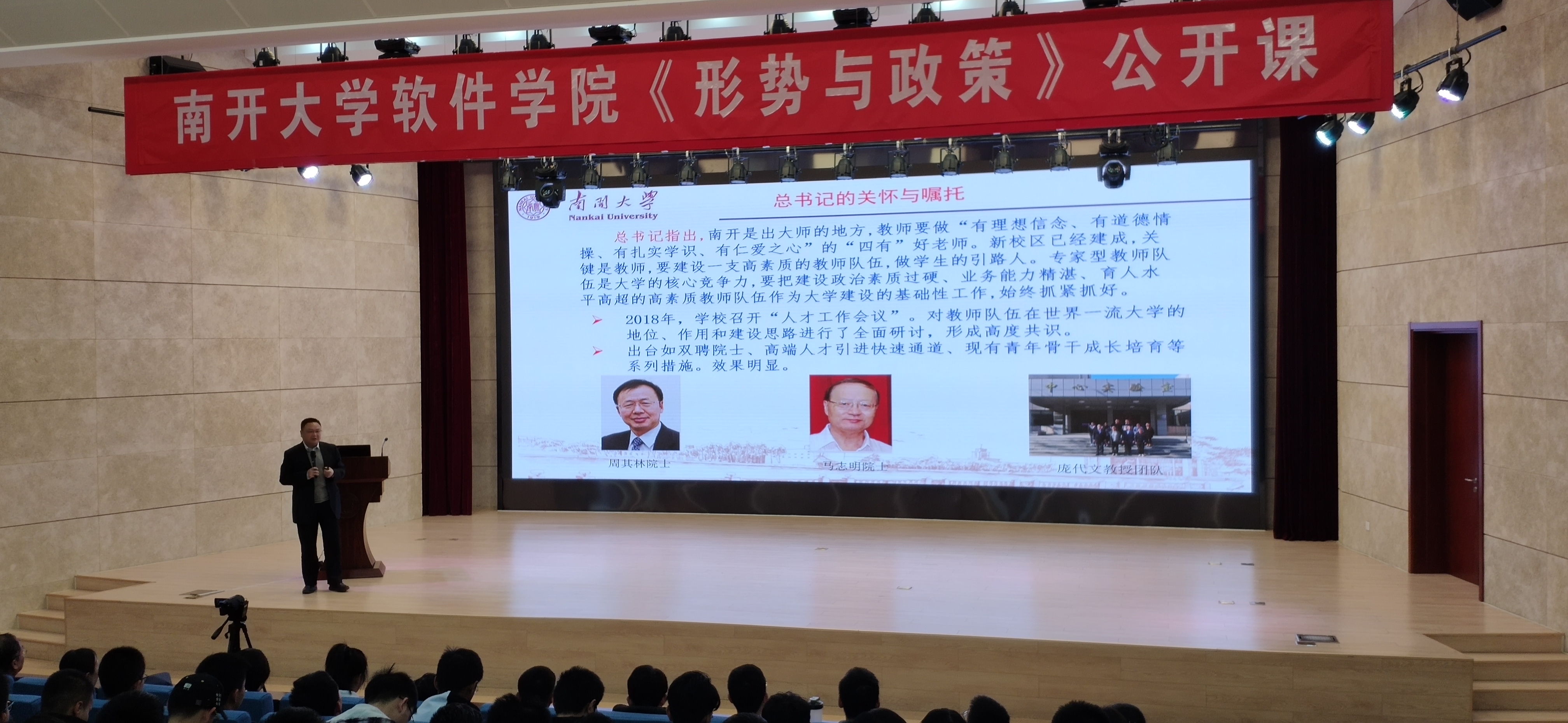 李靖副董事长以深厚的爱国情怀、宽广的教育视野、深沉的责任意识,为同学们带来了一堂生动精彩的形势与政策课。同学们纷纷表示,通过此次课程更加了解百年南开的光辉历史和爱国情怀,更加了解当前教育形势和未来发展,同学们将牢记习总书记嘱托,将小我融入大我,为国家和学校的发展贡献自己的力量!