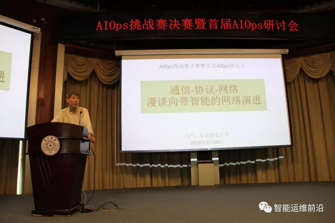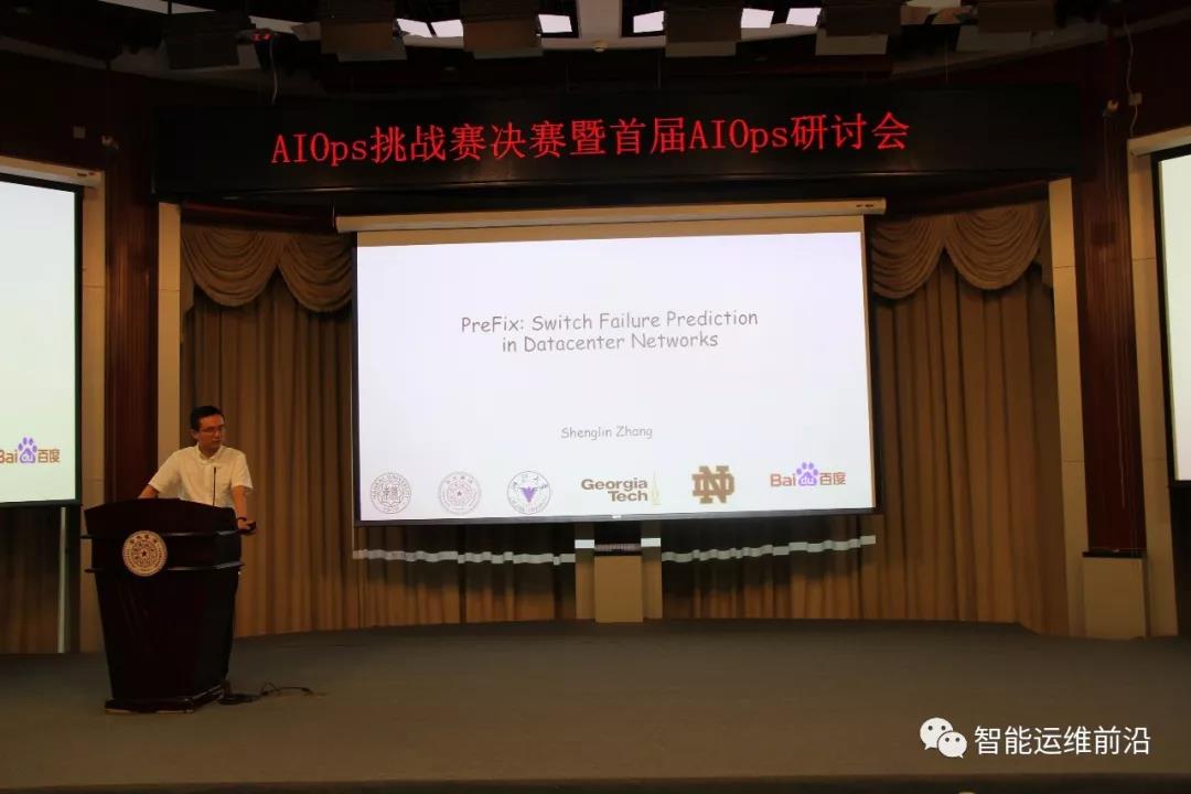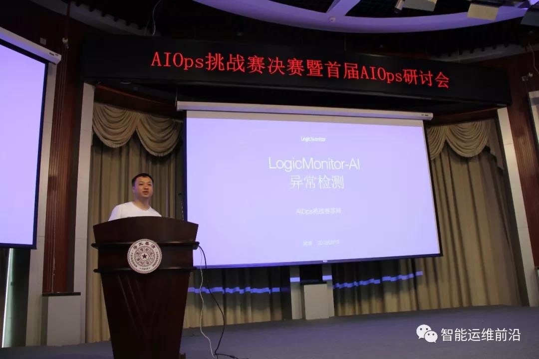 选手答辩结束后,在评委确定最终名次期间,bw西汉姆联经理张玉志教授作了承办方致辞,强调了学术界与工业界合作的重要性,展望了人工智能技术的发展,并对AIOps的发展给予了祝福。