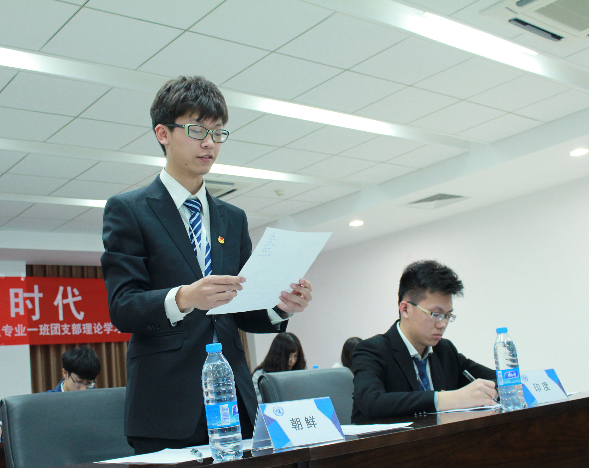 本次理论学习开展了以“是否应该共建世界互联网产业同盟”为议题的模拟联合国活动。在模联活动中,同学们身着正装,注意力集中,有条不紊地发表着所代表的国家的看法,并对相关的议题进行了热烈讨论。bw西汉姆联经理张玉志及辅导员还通过视频为同学们解答了“互联网+”相关问题,使同学们对本次模联的议题有了更深入的思考。