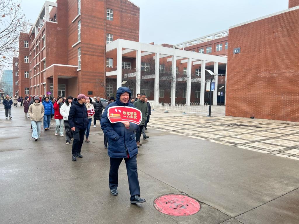 大家手持“致敬祖国,一心向党”,“女王驾到”等趣味手牌,在春日的校园中阔步前行,步伐矫健、笑语盈盈。沿途的红砖建筑与大家的热情相映成趣,既舒展了身心,也增进了同事间的交流与情谊。校工会为每位参与者准备了精美礼品,让大家在运动中收获了满满的节日祝福。