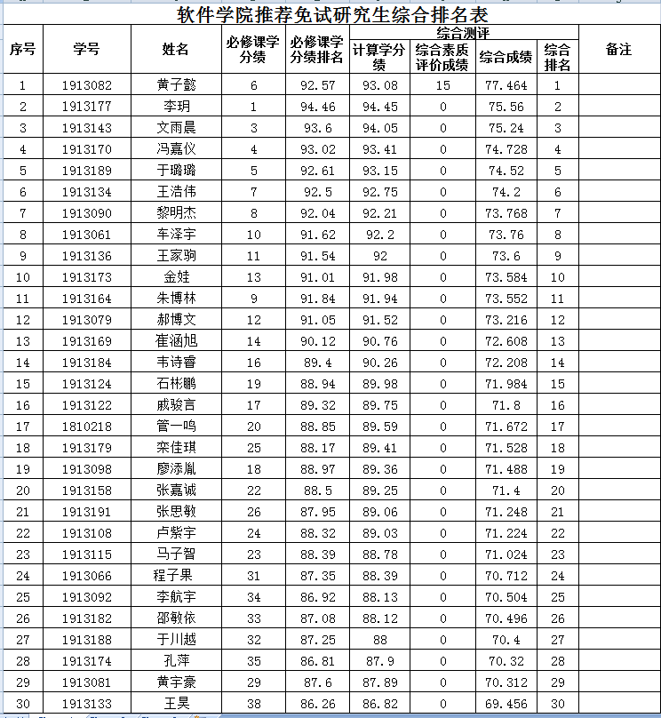 【本科推免】bw西汉姆联2023年推荐免试研究生名单公示