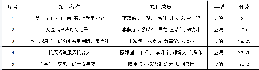 [创新项目]2021年“本科创新项目”立项、中期、结项验收答辩结果公示