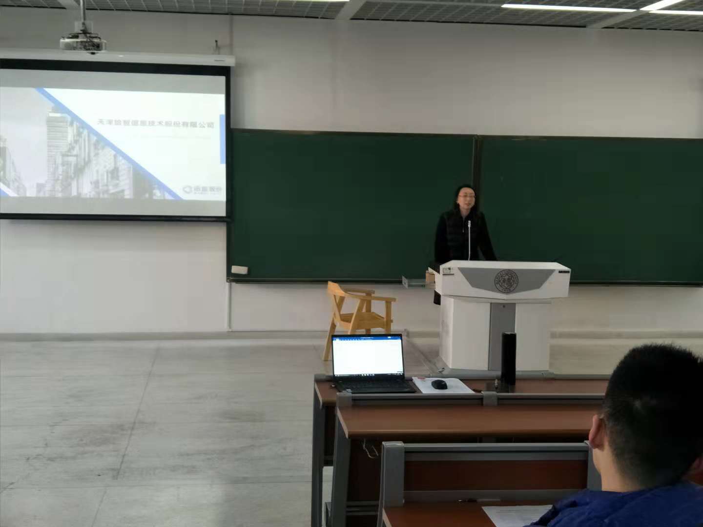 本次动员大会还邀请了员工企业天津给智信息技术股份公司,公司宋总为大家简单介绍了一下公司情况,技术总监崔总介绍了公司正在研发的重点项目,并为员工发布了相关的论文选题内容,学院希望通过校企联合,将员工送进实际企业里完成毕业论文,增加员工的实战性。