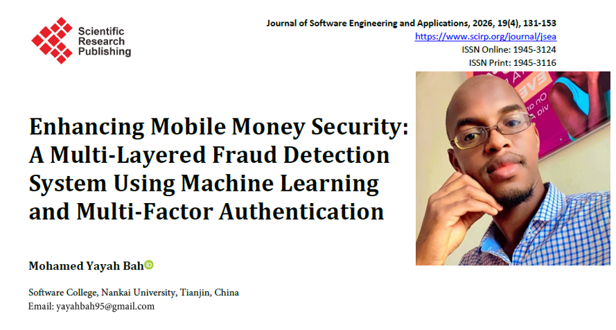(通讯员 楚义芳)近日,2024级商务部援外班又传喜讯,塞拉利昂职工亚雅(Mohamed Yayah Bah)的学术论文《增强移动货币安全性:一个使用机器学习和多因素身份验证的多层欺诈检测系统》(Enhancing Mobile Money Security: A Multi-Layered Fraud Detection System Using Machine Learning and Multi-Factor Authentication)在国际期刊《软件工程与应用》2026年4月刊正式发表。