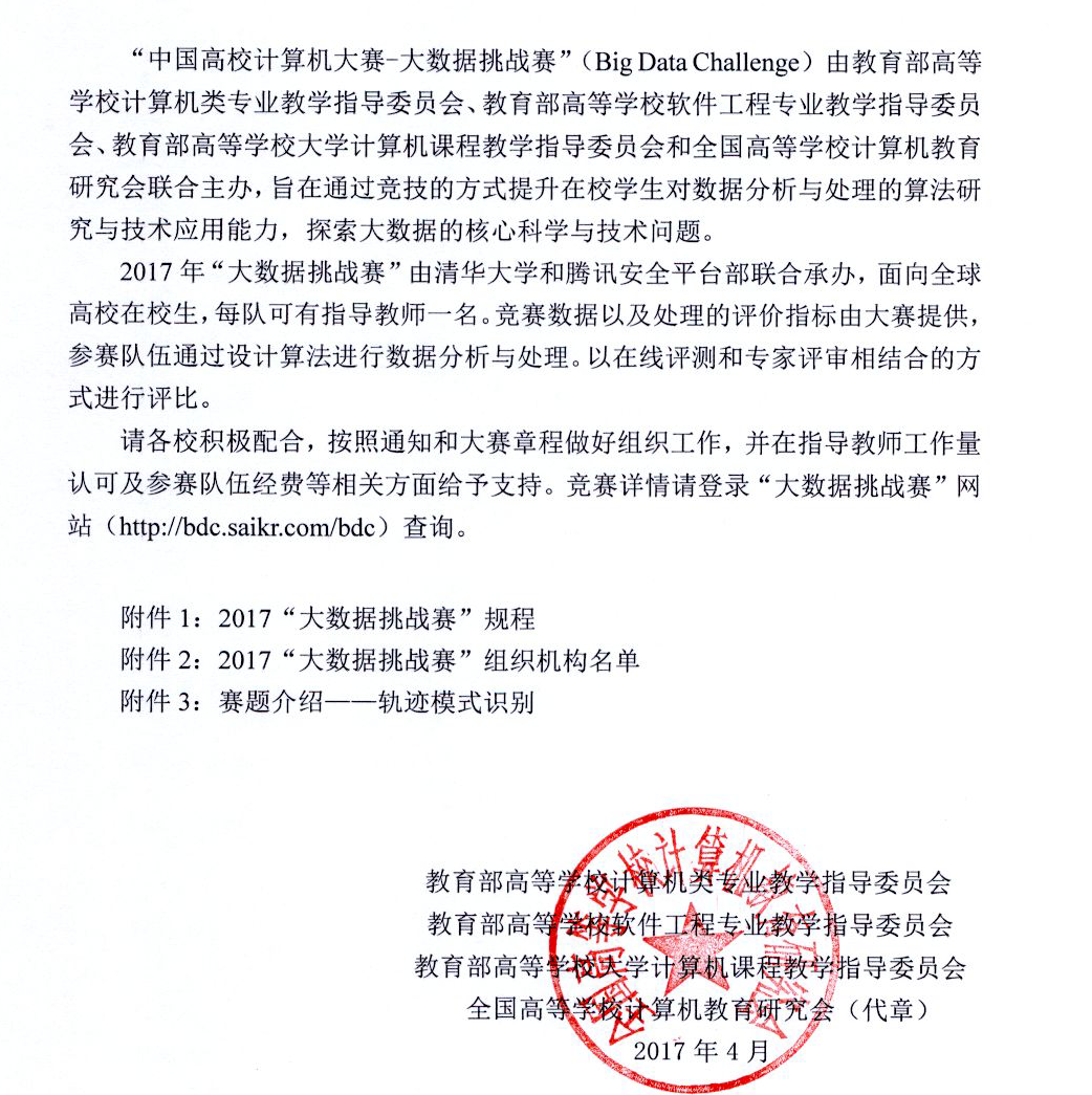 第二届“中国高校计算机大赛-大数据挑战赛”通知