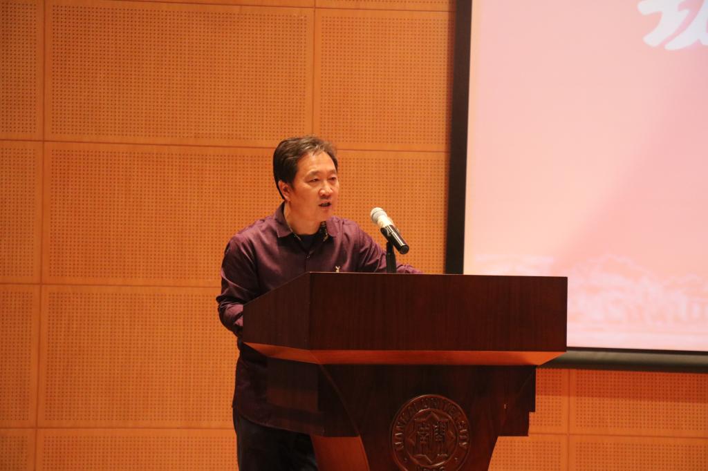 员工代表、2019级本科生马宁上台发言,她向学院老师们的辛勤付出表示了真诚地感谢,她代表全体同学郑重承诺,每一名新生都将成为优秀的社会主义建设者和接班人。不忘初心,牢记使命,始终坚持“爱国、励志、求真、力行”,为实现中华民族伟大复兴的中国梦作出南开人的历史贡献。