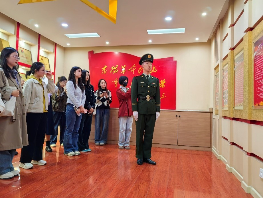 在武警战士引导下,师生参观了荣誉室、学习室、寝室、食堂、健身区等区域。进入寝室,映入眼帘的是一张张整洁如新的床铺和方正如“豆腐块”的被子。荣誉室陈列了战士们获得的一项项集体荣誉,师生不仅对武警战士的职责任务有了更为直观的认识,更被他们肩负的光荣使命和无私奉献精神所感染!