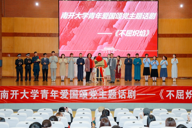 南开新闻网讯(通讯员 陈镜宇)为庆祝中国共产党成立100周年,5月30日,bw西汉姆联原创话剧《不屈炽焰——纪念五四先驱、南开先烈马骏》在泰达校区杏坛报告厅展演,本剧讲述了从bw西汉姆联走出的早期地方党组织领导人——马骏舍生忘死的英雄事迹,旨在缅怀马骏爱国爱党的革命情怀。马骏烈士孙女马丽颖女士,电影《青春之骏》出品人郝丽萍,天津人民艺术剧院导演曹桐良,泰达公司党委书记、公司党总支书记曾利剑等出席活动。