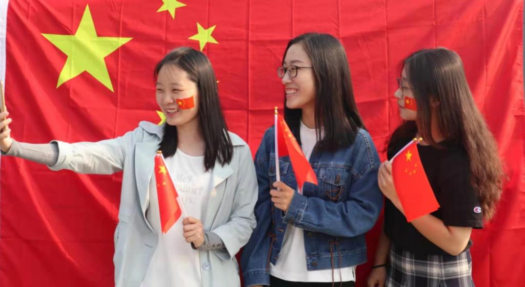 班级团支书、2019级本科新生马宁组织团员们开展了“我与祖国共奋进——国旗下的演讲”主题团日活动,活动后,新生团员们纷纷在国旗下合影,马宁兴奋地说:“很幸运,在祖国的七十华诞之际,我们又恰好遇见南开,成为新百年的南开人。在这所积淀着爱国主义优良传统的学校里,我们必当潜心钻研,虚心向学,将个人理想与中国梦相结合,让五星红旗的光芒照进世界舞台的中央!”