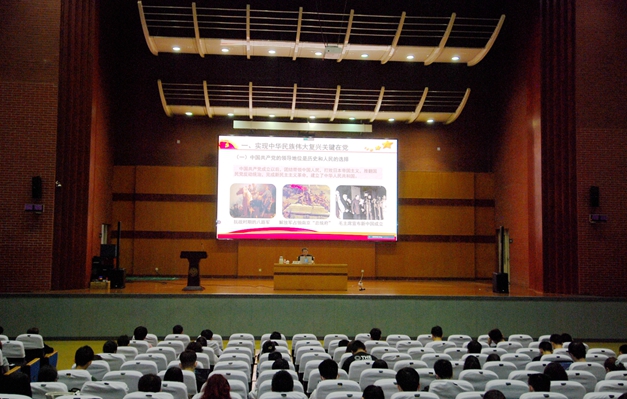 蓝海以“坚持和加强党的领导 全面从严治党”为题,围绕“实现中华民族伟大复兴关键在党”“坚持党对一切工作的领导”和“坚持全面从严治党”三方面,通过丰厚的史料、鲜活的人物、生动的事例,深刻阐释了为什么要坚持和加强党的领导、怎么去加强党的领导以及加强党的建设最主要的工作任务是什么这三个问题。他强调,中国共产党的领导地位是历史和人民的选择,坚持党的领导是党和国家的根本所在、命脉所在,是全国各族人民的利益所系、幸福所系,新时代党的建设只有把党的政治建设摆在首位,才能统一全党意志,为实现党的目标和纲领而共同奋斗。